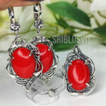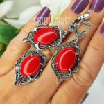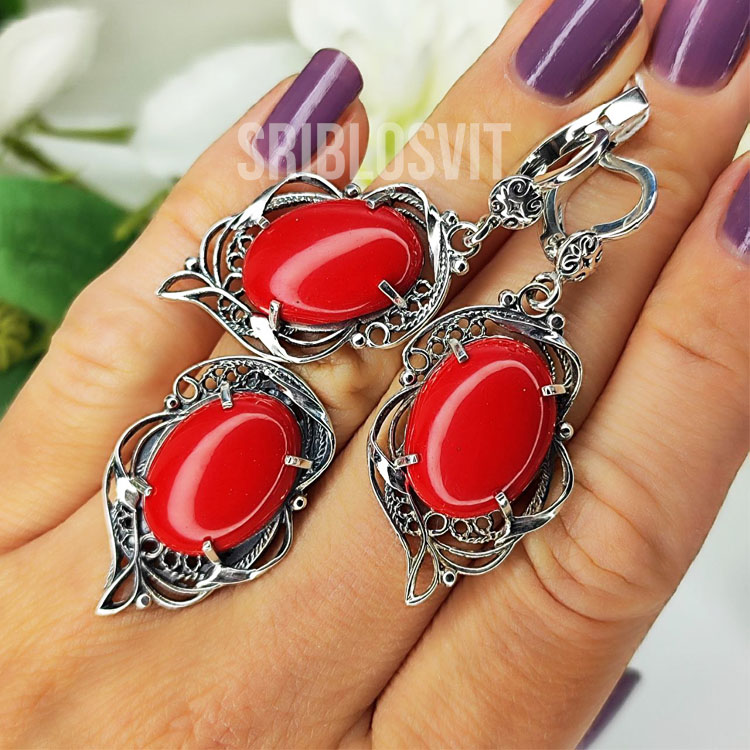 срібний набір прикраси з червоних коралів авторські ювелірні вироби