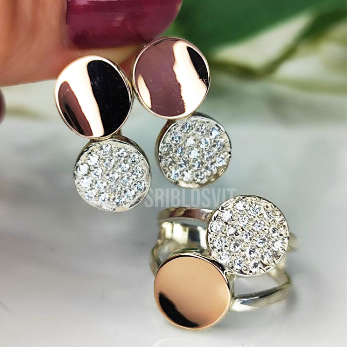 срібло з золотом набори кульчики срібні з золотом