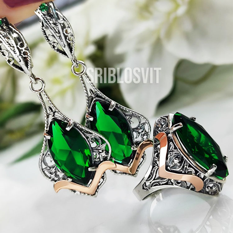срібні набори з золотими пластинами прикраси з смарагдом